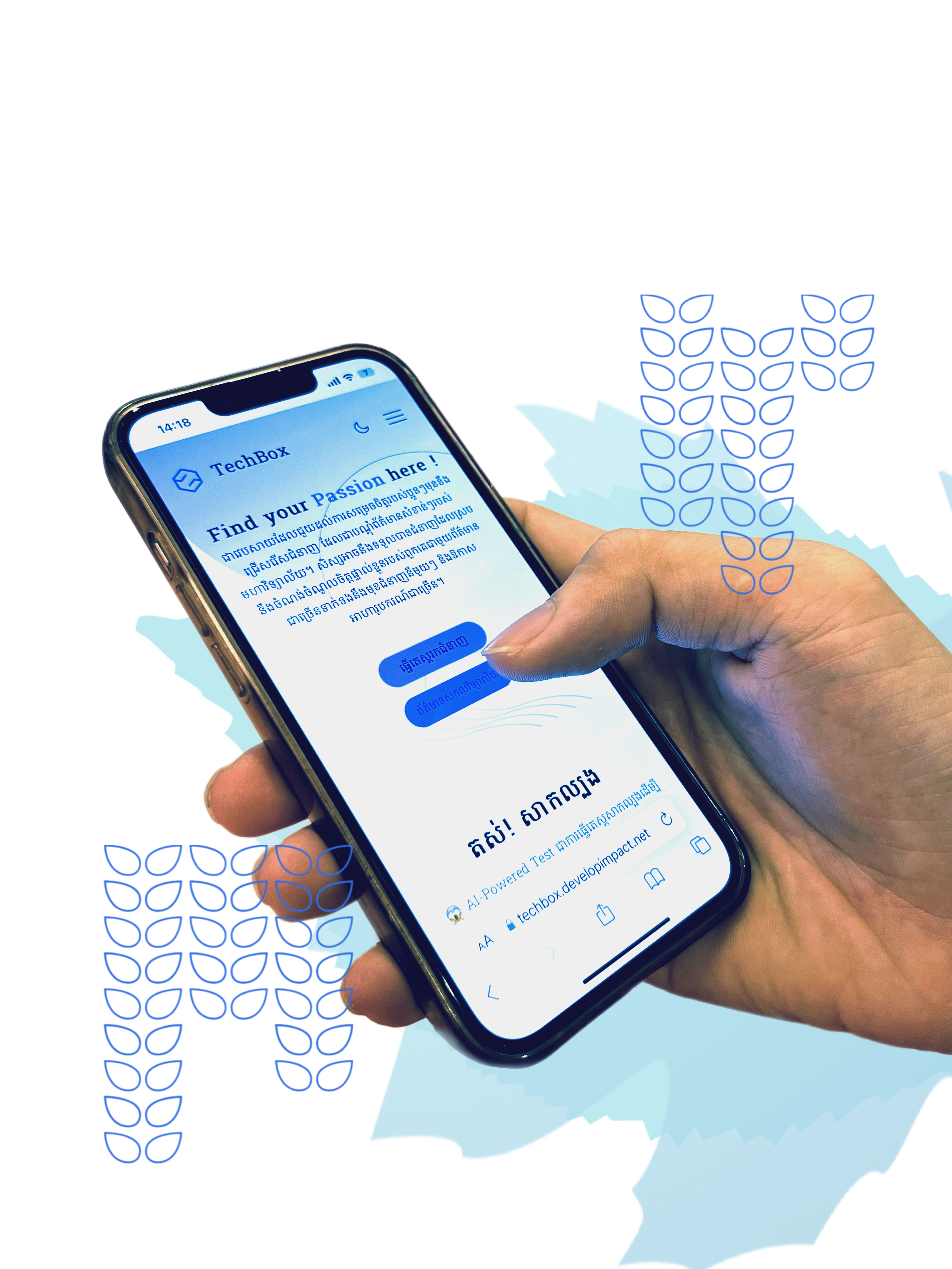 Tech Box ជាវេទិកាអនឡាញសម្រាប់សិស្សវិទ្យាល័យក្នុងការស្វែងរកជំនាញនៅក្នុងបច្ចេកវិទ្យាស្របតាមឆន្ទៈ និងការចូលចិត្តរបស់ពួកគេ តាមរយៈមុខងារធ្វើតេស្តតម្រង់ទិស។